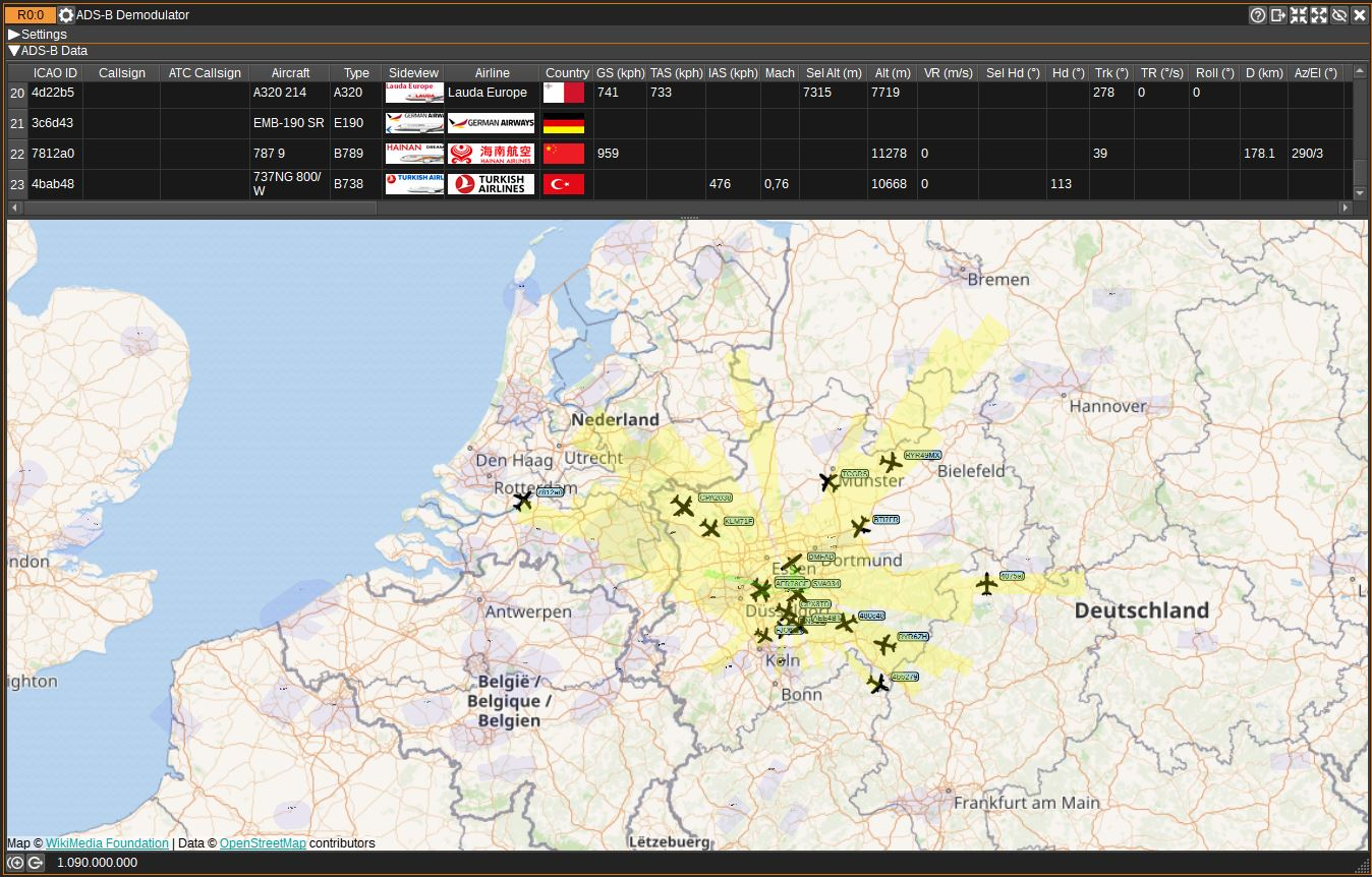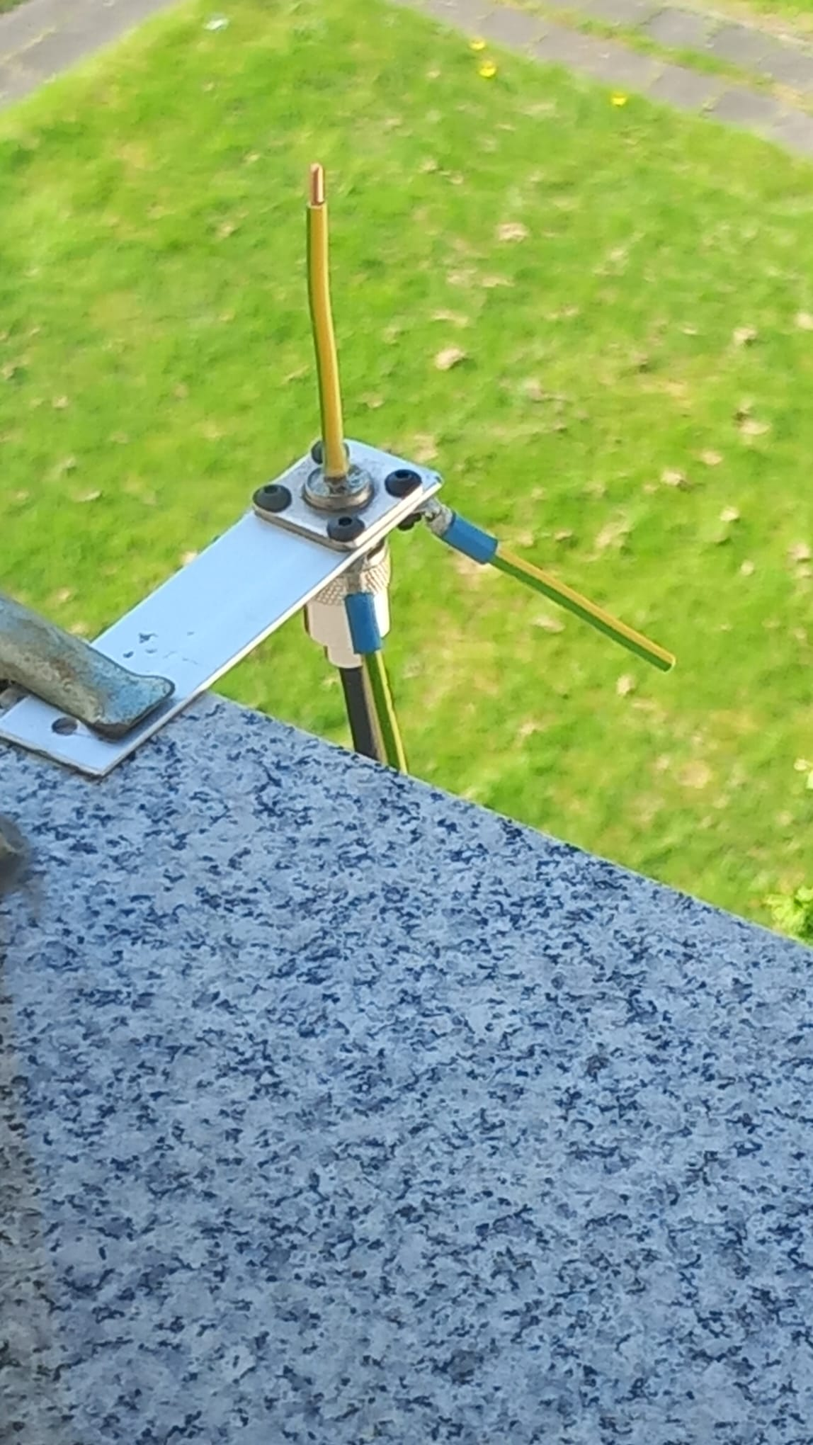 Das ist meine erste Antenne für ADS-B die ich gebaut habe. Grundplane 6.5 cm Strahler und Radiale lang und am Fensterbrett außen angebracht Richtung Norden.