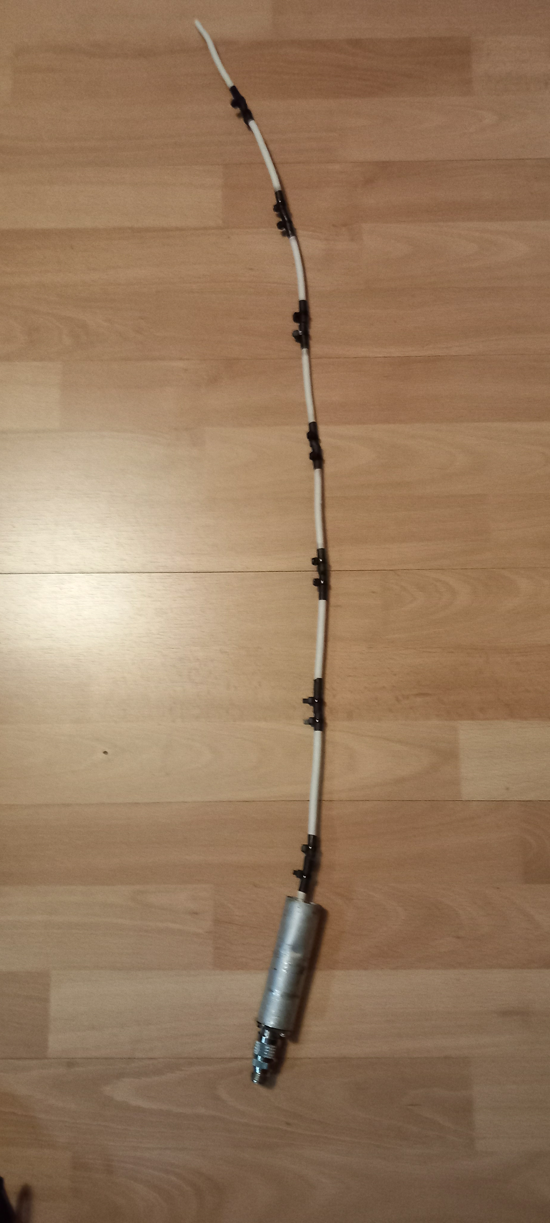 Diese Antenne ist die letzte Antenne die ich gebaut habe, sie ist die beste von allen. Diese Antenne besteht aus 8 Koaxial Elemente 75 Ohm Sat Kabel 15 cm lang 2 cm oben und unten sind zum einschieben, Sehle auf Schirmung so das es eigentlich 11 cm reine Antenne ist. Die Antenne hat eine gesamt Länge von 120 cm . Das ist eine Kollinear-Antenne, und von allen drei Antennen die beste. Alle Antennen habe ich mit einem Nano VNA getestet so das sie auf der Frequenz 1090 GHz eine Stehwelle von 1:1.1 - 1:1.4 haben.
