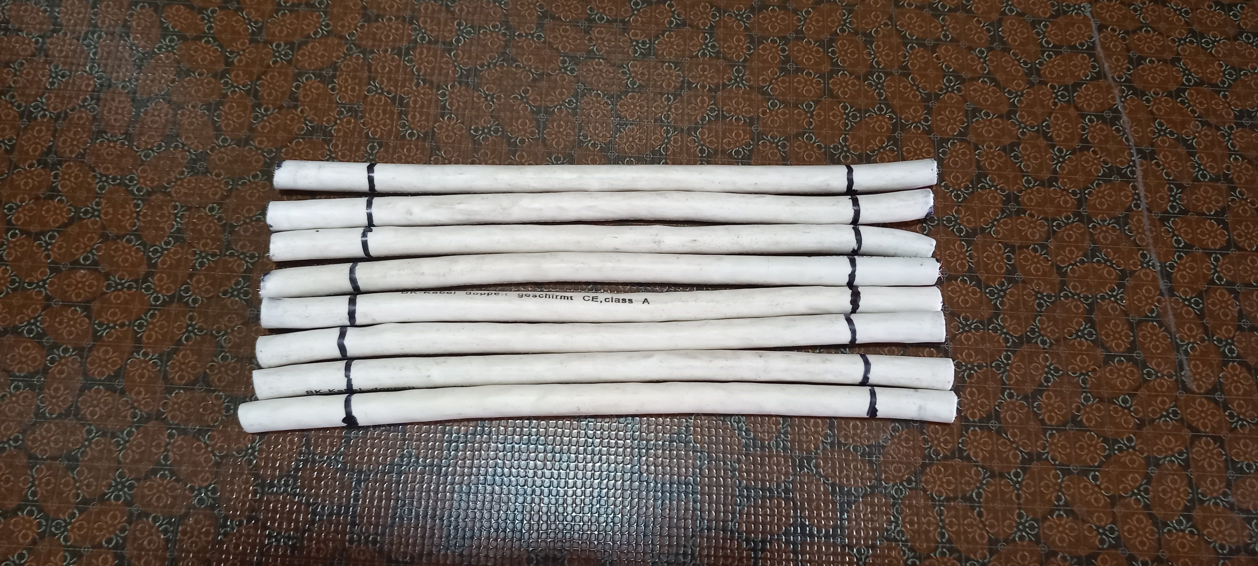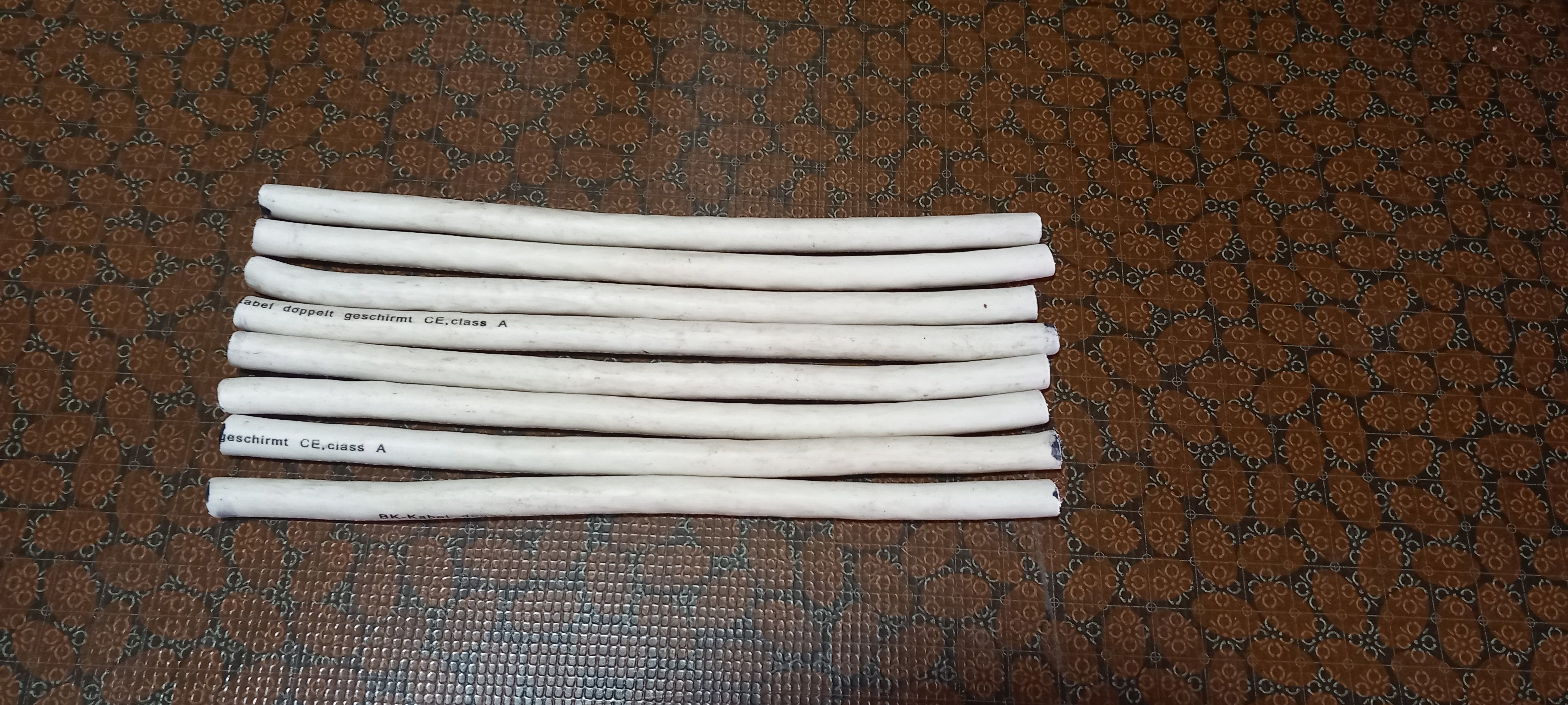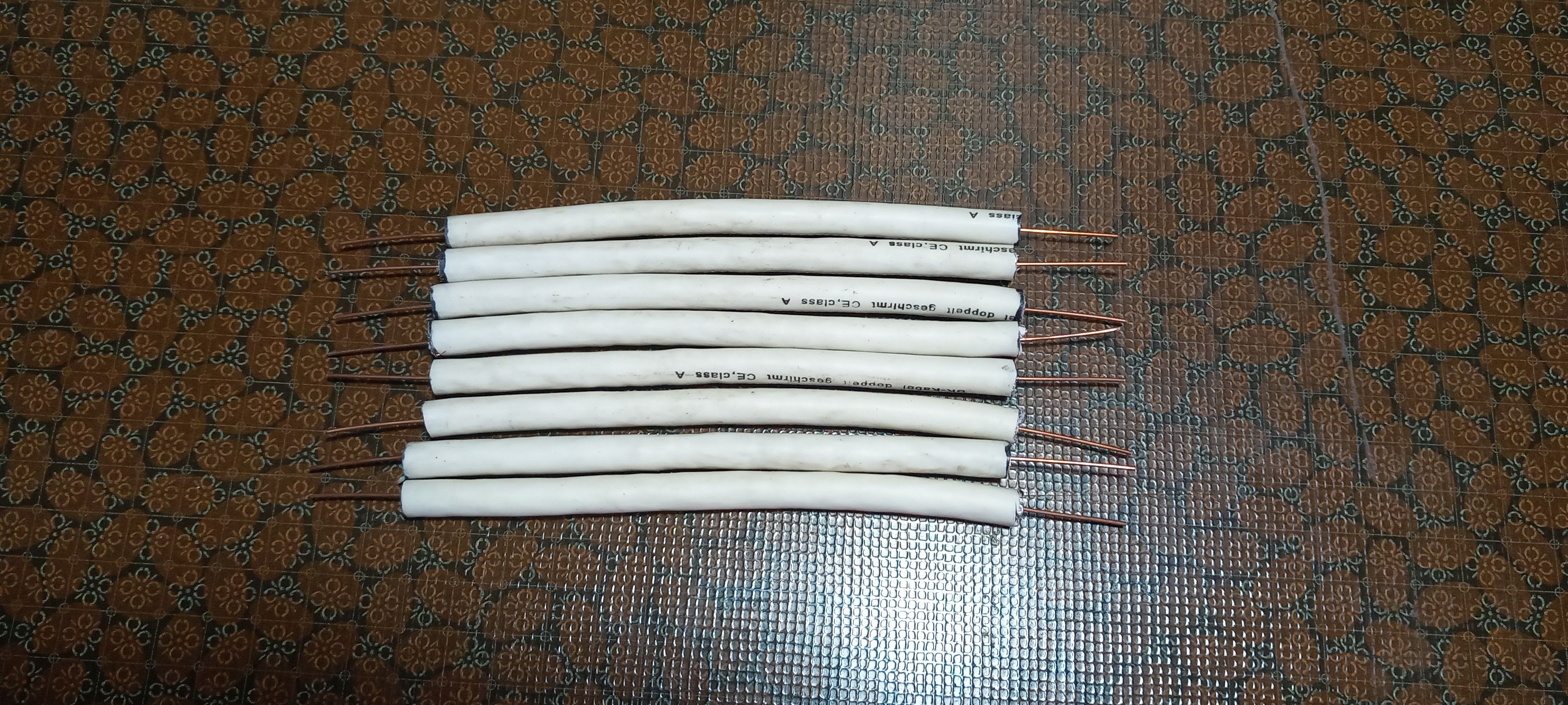 Hier habe ich 8 Stücker Satelliten Kabel 75 Ohm, auf 15 cm Abgeschnitten.