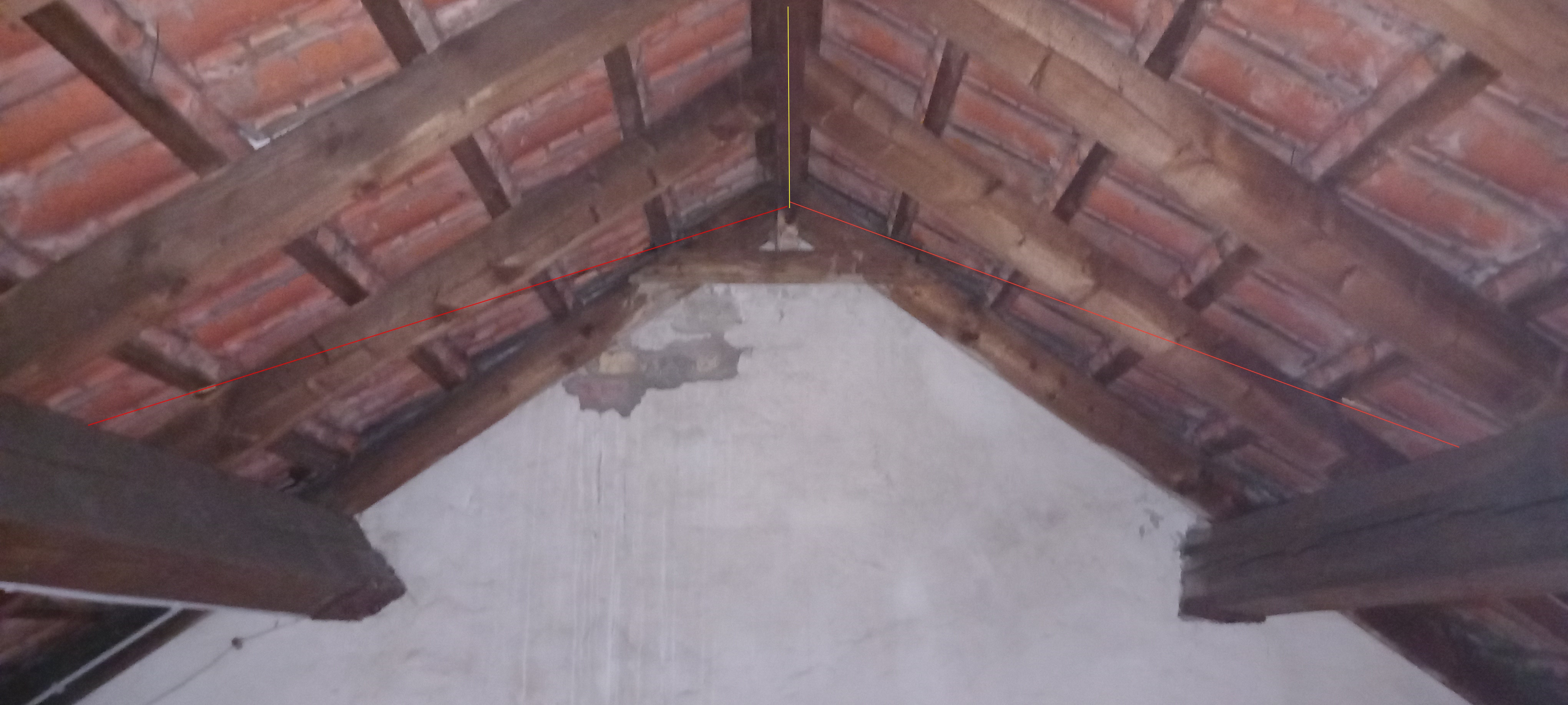 Dann habe ich sie auf dem Dachboden Montiert. Die Gelbe Linie ist die Zuleitung zur Antenne. Auf dem Strom Balun. Die zwei Roten Linien sind die Antenne selber.
