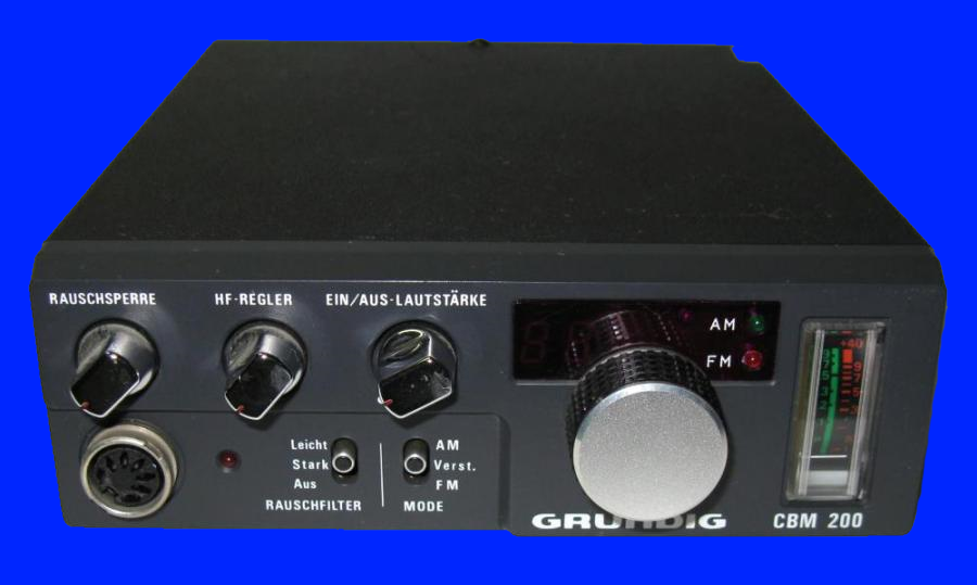 Die Grundig CBM-200, von 1978, das Mobilgerät hatte mein Vater im Auto. Eine gute solide robuste Technik hatte sie. Einen guten HF-Regler hatte sie auch schon. Sie hatte schon AM FM, und eine Bomben Modulation.