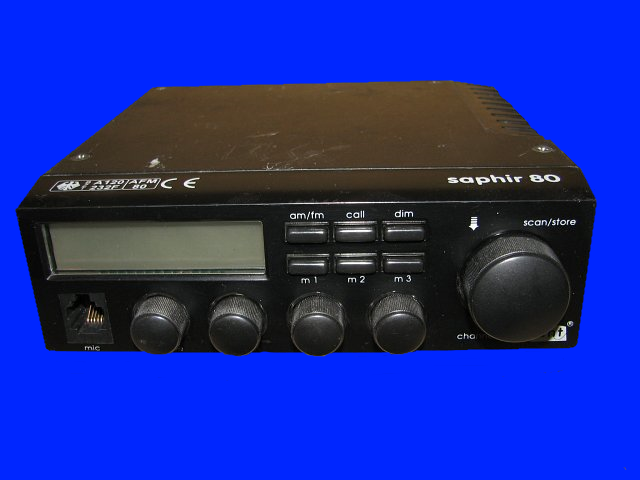 Die DNT Saphir, von 1995, 80 Kanäle FM 80 AM 12. Das gerät war modern mit ctcss Ton 5 Ton selektiv ruf. Es hatte FM 4 Watt 80 Kanäle, und AM 1 Watt 12 Kanäle. Durch seine kleinen Abmessungen war es praktisch, es hat überall ein platz im Wagen gefunden.