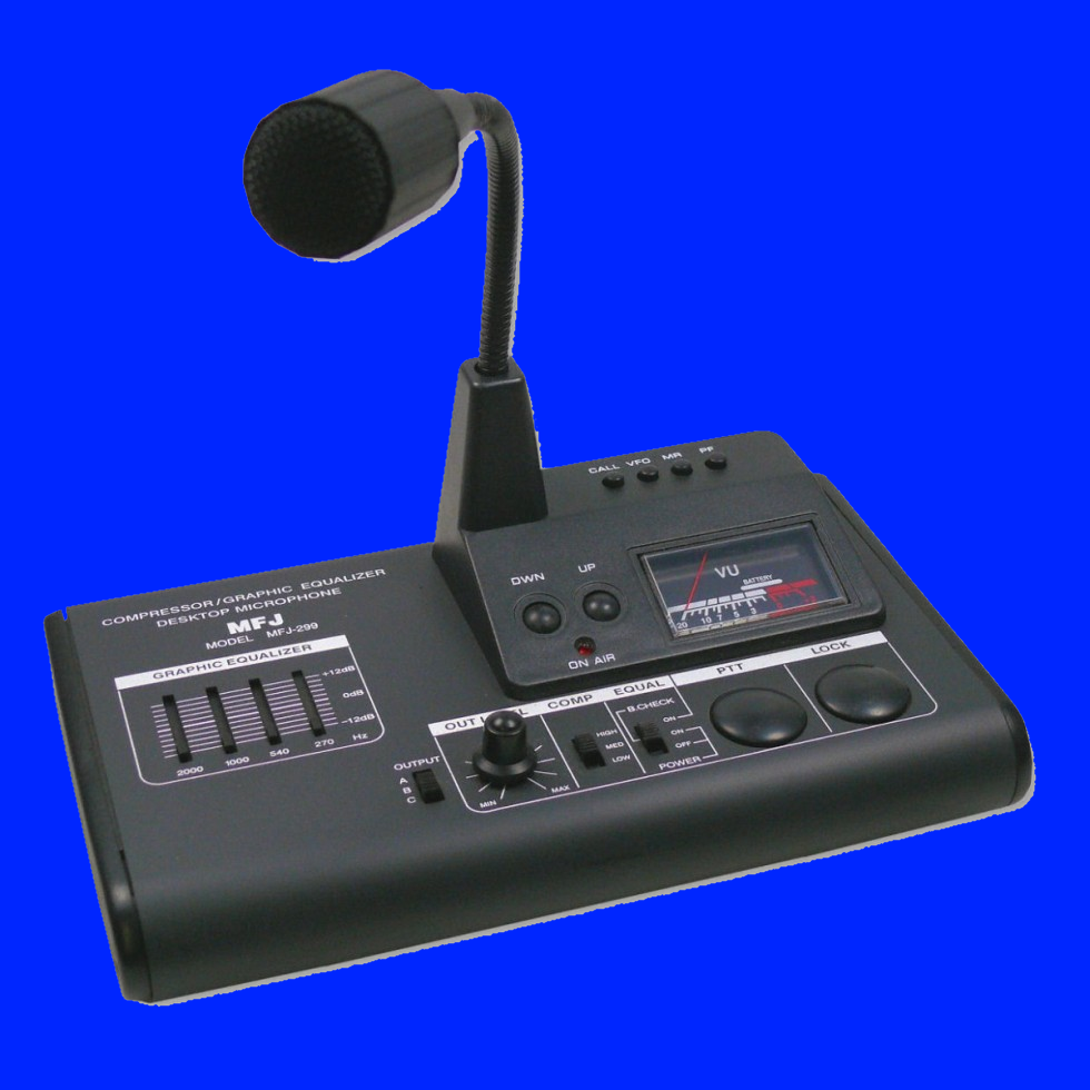 Verstärker-Standmikrofon Eingebaute Echo-Funktion, regelbar VU-Meter, TX LED Stromversorgung über 9 Volt Batterie Electret Mikrofon Roger-Piep Funktion,PTT Lock Funktion Impedanz 1K Ohm Gewicht ca. 800g